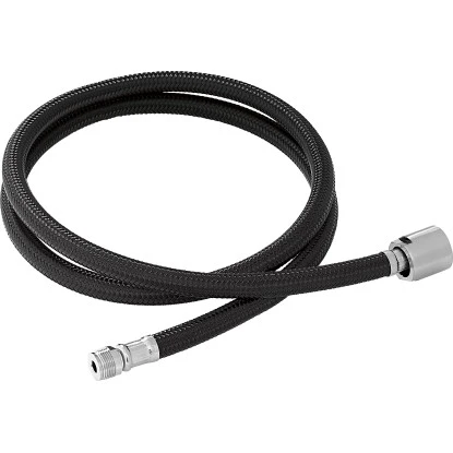Seine Länge von 1,25 m bietet ausreichend Spielraum. Der qualitative Schlauch ist aus schwarzem Nylon sowie Messing gefertigt und verfügt über einen Konus in Edelstahl-Optik. Im Lieferumfang sind zudem zwei Dichtungen enthalten.