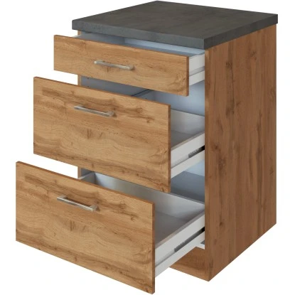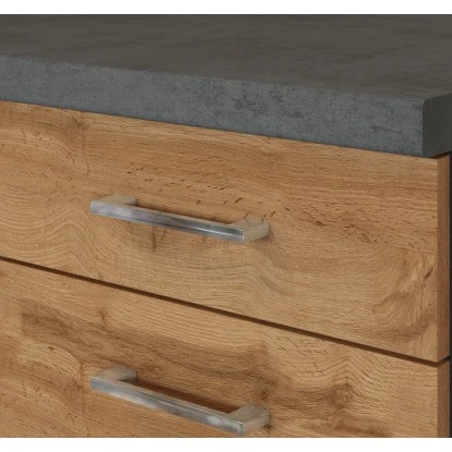Die Küchenserie Sorrento besticht durch ihre 4 absolut trendstarken Dekorkombinationen, in denen immer das ausdrucksstarke Eichedekor eine entscheidende Rolle spielt. Durch eine Vielzahl an Zeilen- und Winkelkombinationen, die außerdem durch eine große Auswahl an Ergänzungsmöbeln komplettiert werden, ergibt sich ein breites Spektrum an Einrichtungsmöglichkeiten. Möchten Sie Ihren Backofen lieber autark in einem Hochschrank untergebracht haben? Benötigen Sie einen großzügigen Kühlschrank mit integriertem Gefrierschrank? Lagern Sie Ihre Vorräte gern in Auszügen und Apothekerschränken? Alle Schränke sind flexibel aufzustellen und die Türen sind wahlweise rechts oder links montierbar. Entscheiden Sie selbst- hier bleiben keine Wünsche offen.