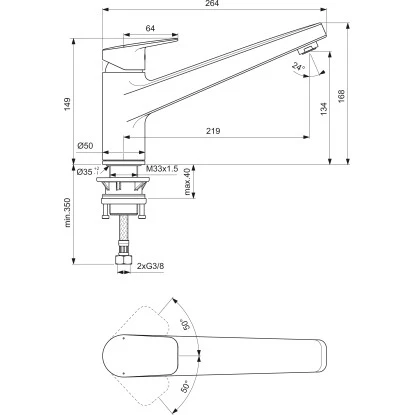 – Maximale Stärke der Arbeitsplatte 40 mm.