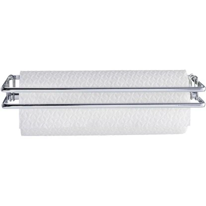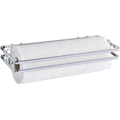 Im praktischen Küchenrollenhalter der Style-Serie von Wenko aus glänzendem, verchromtem Metall erhält die Papiertuchrolle einen festen Platz. An der Wand hängend werden die Papiertücher nicht feucht und sind leicht ab zu reißen. In den Küchenrollenhalter passen alle handelsüblichen Küchenrollen. Der Wandrollenhalter lässt sich genau dort befestigen, wo sie gerade benötigt wird. Im Lieferumfang sind Schrauben und Dübel für die Wandmontage enthalten.